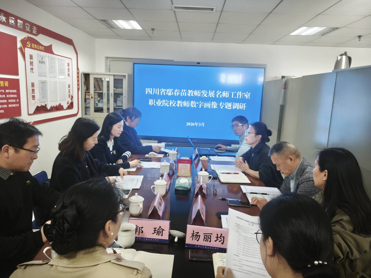 为深入推动人工智能技术与职业教育融合发展,系统提升教师数智素养,精准构建教师专业发展画像,3月24日下午,四川省教师发展中心调研组、四川省鄢春苗名师工作室团队一行莅临我校,围绕全省AI助教应用能力提升培训、职业院校教师数字画像构建等核心议题进行专题调研,并同期举办省级课题开题论证会。